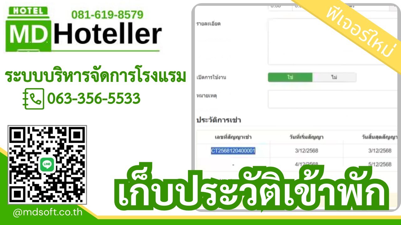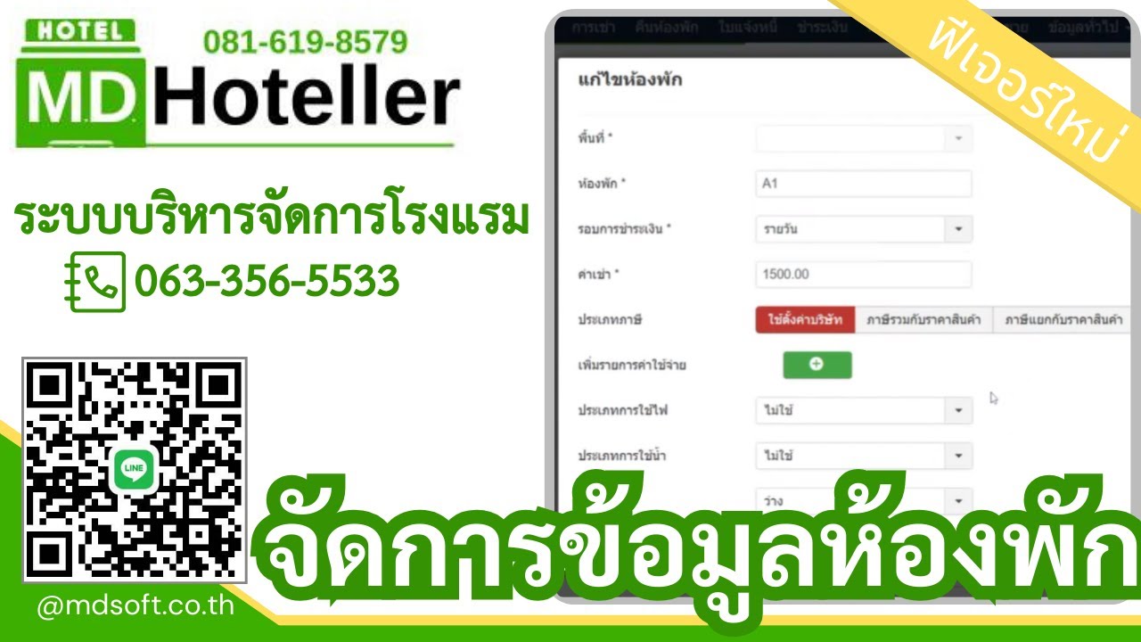 ระบบ MDHoteller คือ ระบบบริหารจัดการโรงแรมและห้องพัก ที่บริษัท MDSoft เราเป็นผู้พัฒนา ออกแบบ และดูแลระบบเองทั้งหมด ตั้งแต่โครงสร้างระบบ ฟังก์ชันการทำงาน ไปจนถึงการให้บริการหลังการขาย ระบบนี้ถูกสร้างขึ้นจากประสบการณ์ตรงที่เราทำงานร่วมกับธุรกิจโรงแรม หอพัก และที่พักให้เช่าหลากหลายรูปแบบ ทำให้ฟีเจอร์ต่างๆ ถูกออกแบบมาเพื่อใช้งานได้จริง ตรงกับขั้นตอนการทำงานของผู้ประกอบการไทย