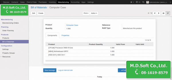 ตัวอย่างความสามารถของ MRP บน Odoo