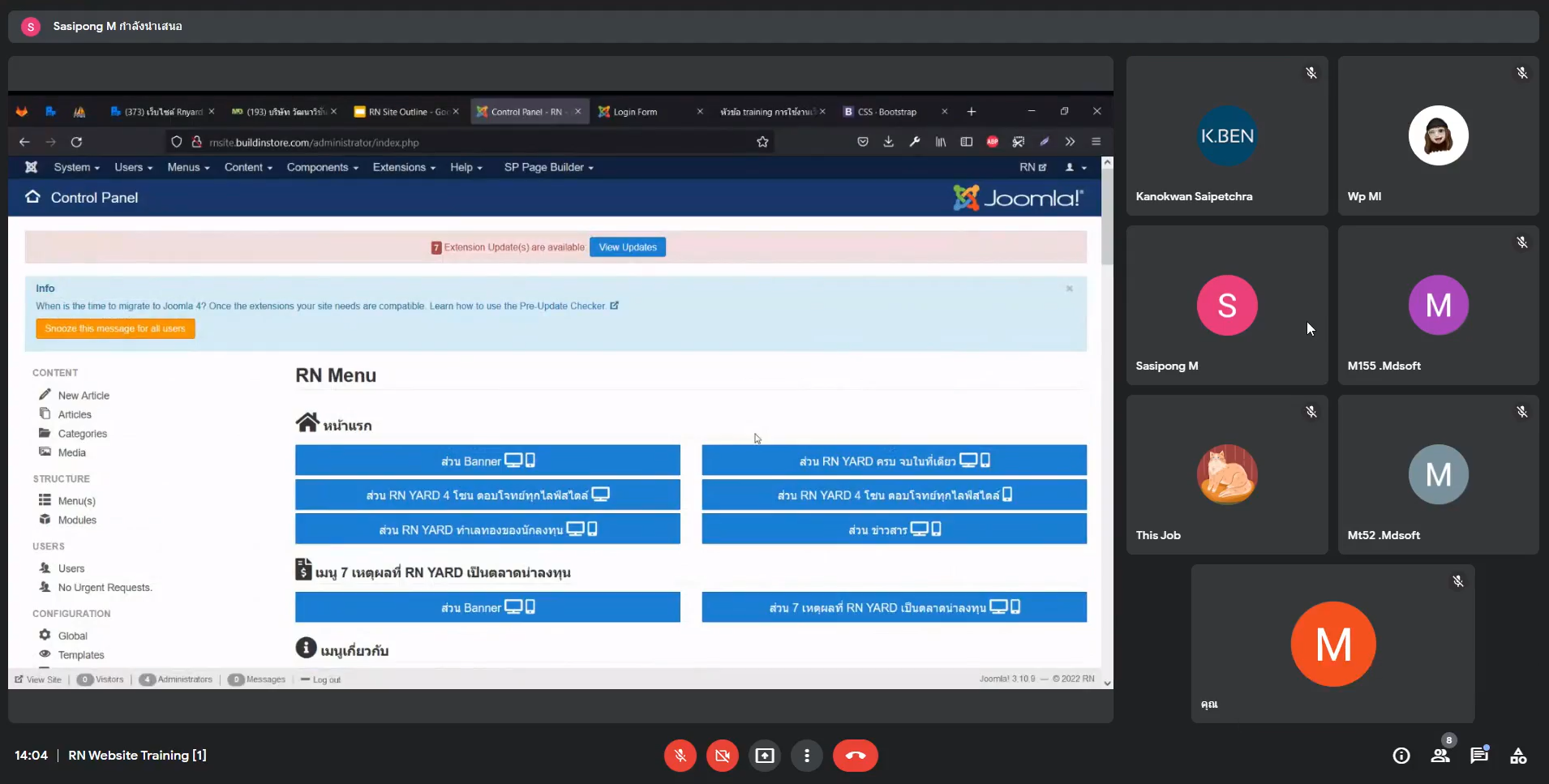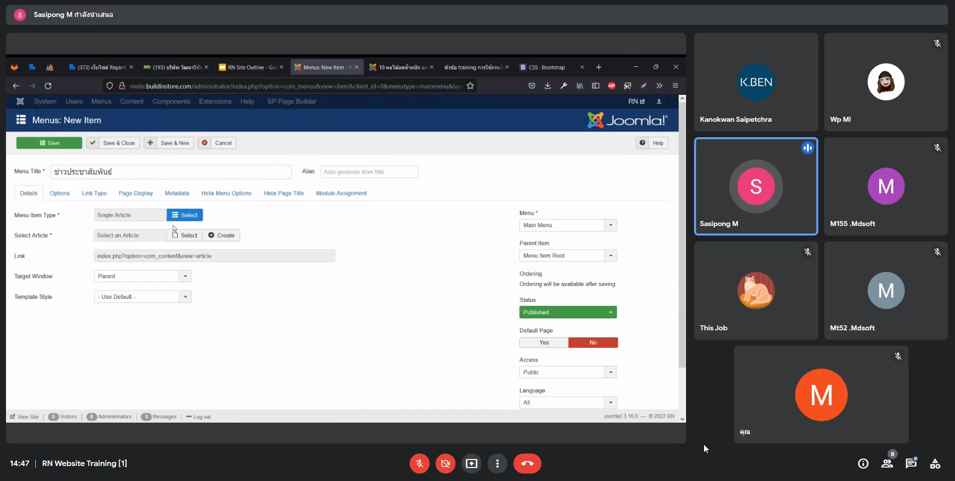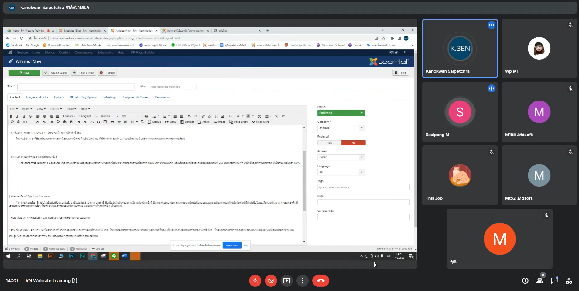 การจัด “อบรมการสร้างเว็บไซต์ด้วย Joomla” ณ วันที่ 7 มิถุนายน 2565 วัตถุประสงค์เพื่อเป็นการพัฒนาศักยภาพใน Joomla โดยการการอบรมจะมีแนะนำการใช้งานของเว็บไซต์ Joomla หรือความรู้ที่ผู้ดูแลเว็บไซต์ควรมี พร้อมทั้งในระหว่างการอบรมมีกาตอบคำถามเพื่อไขข้อสงสัยของผู้เข้าอบรม และแนะนำวิธีการใช้งานต่าง ๆ เพิ่มเติม เพื่อให้สามารถใช้งานได้จริง โดยการอบรมในครั้งนี้เป็นการอบรมออนไลน์ ซึ่งจะอำนวยความสะดวกต่อผู้เข้าอบรมเป็นอย่างมาก เพราะไม่ต้องเสียเวลาในการเดินทาง ทำให้ลดค่าใช้จ่ายที่ไม่จำเป็น แต่ยังได้รับความรู้ไปเต็มๆ