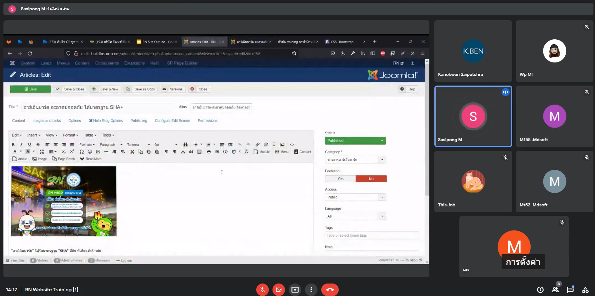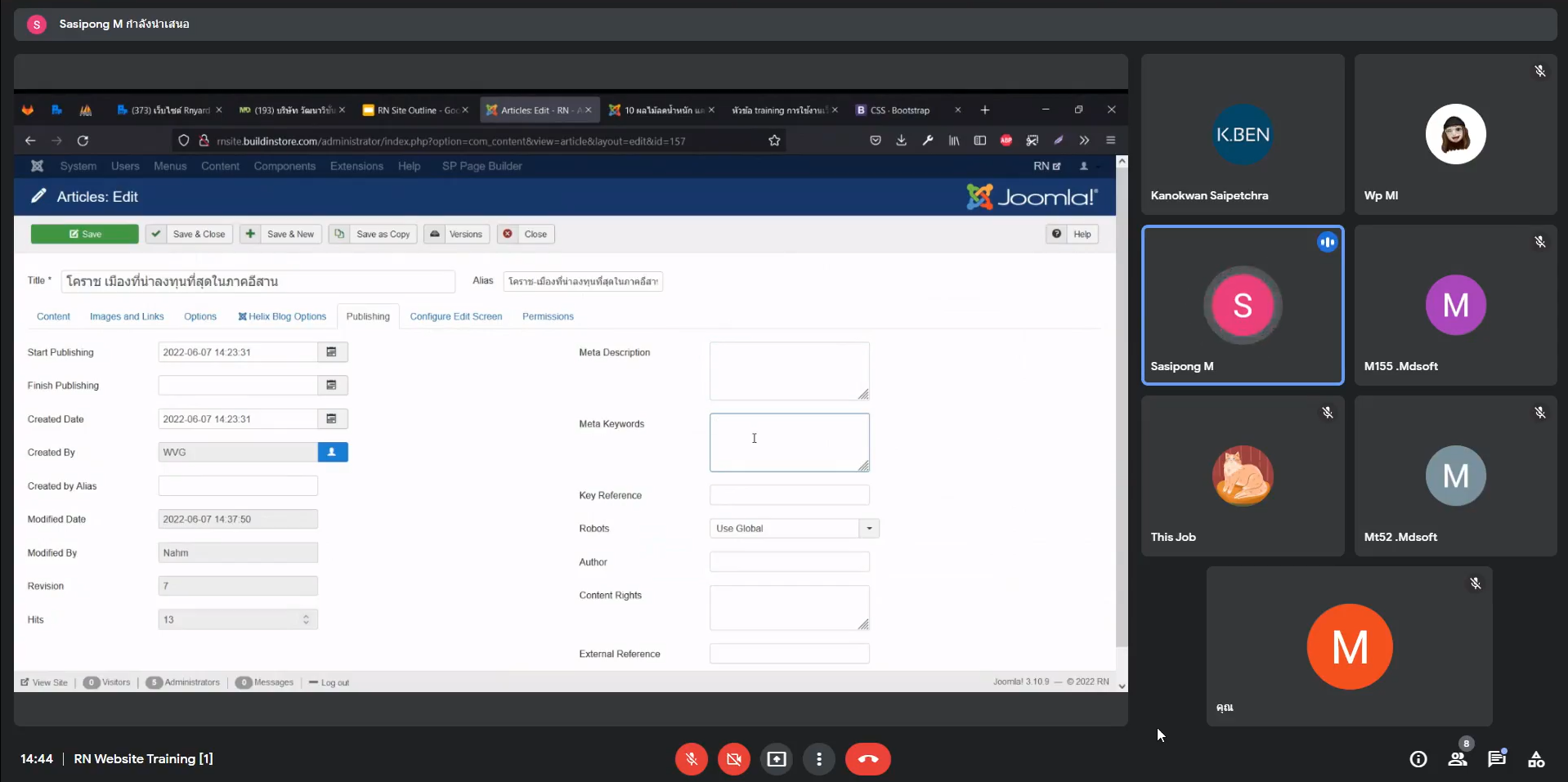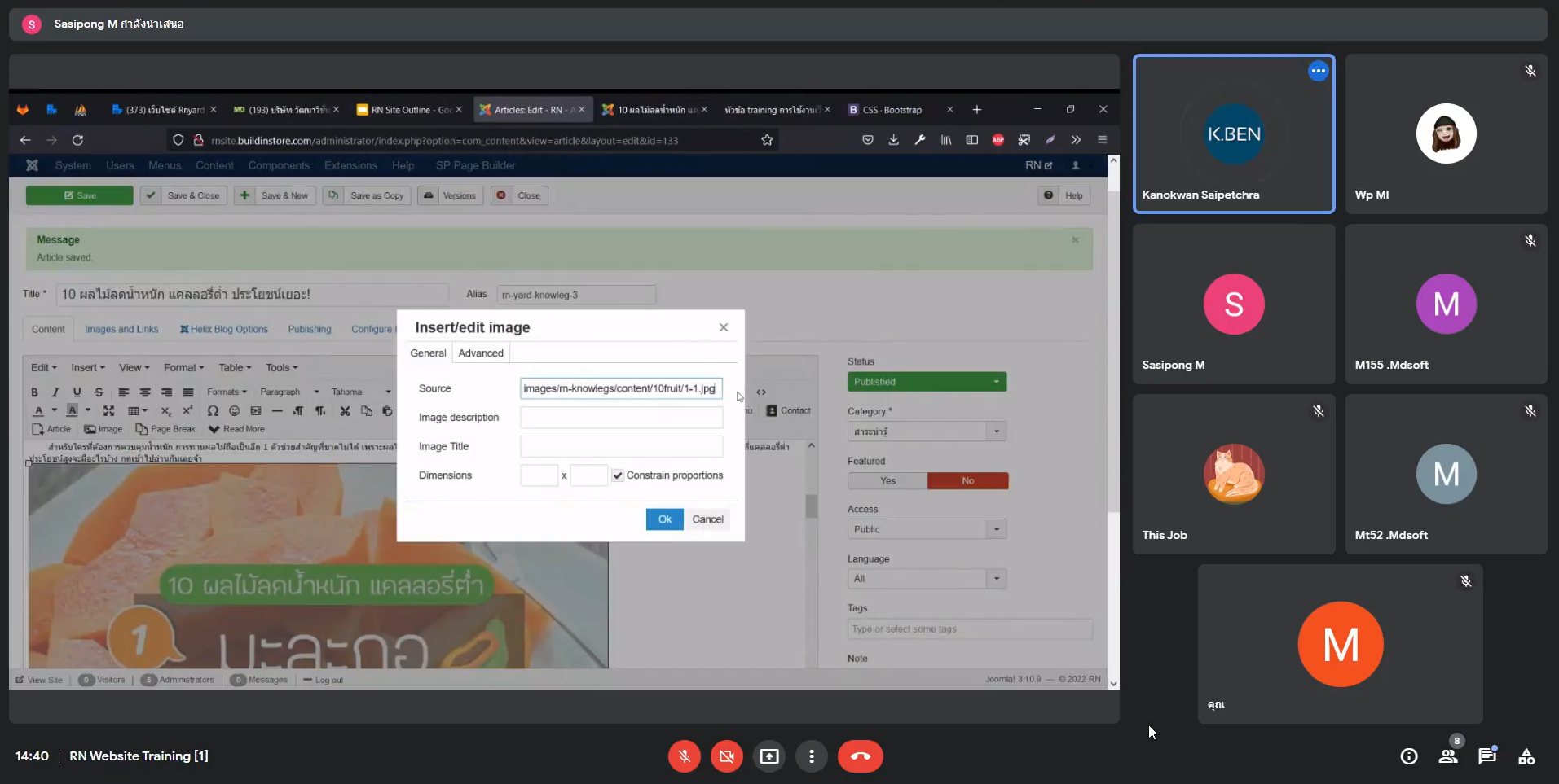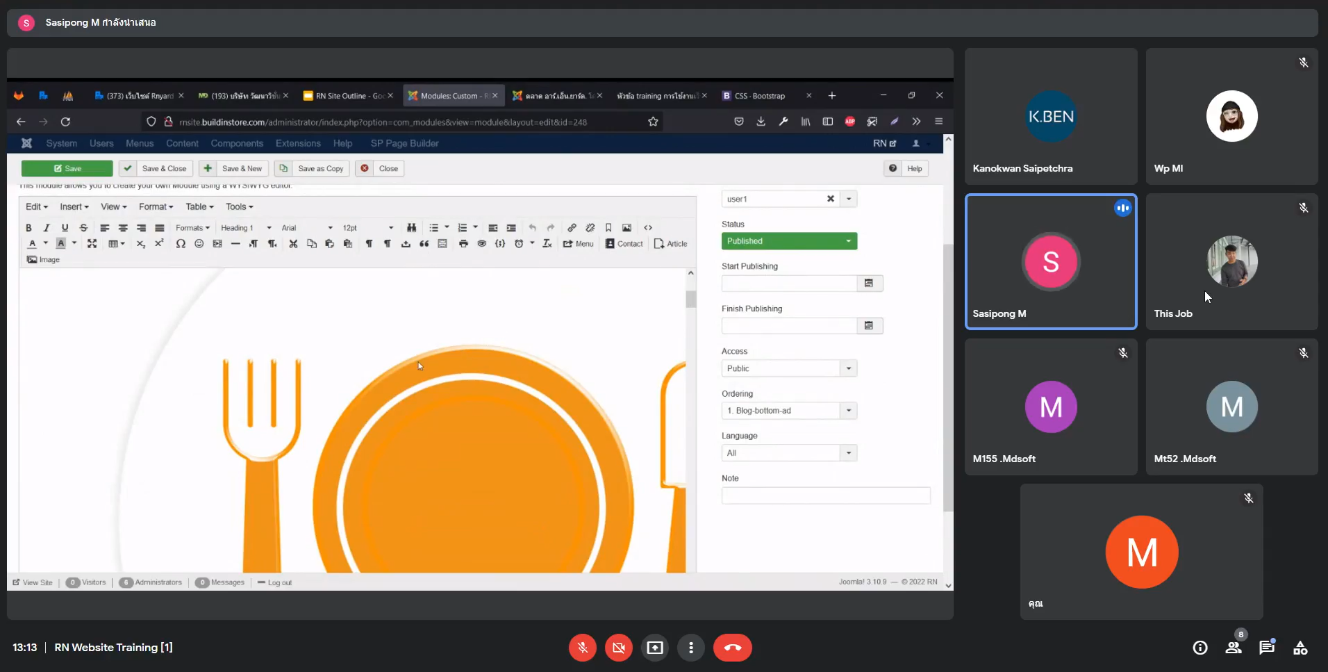 การจัด “อบรมการสร้างเว็บไซต์ด้วย Joomla” ณ วันที่ 7 มิถุนายน 2565 วัตถุประสงค์เพื่อเป็นการพัฒนาศักยภาพใน Joomla โดยการการอบรมจะมีแนะนำการใช้งานของเว็บไซต์ Joomla หรือความรู้ที่ผู้ดูแลเว็บไซต์ควรมี พร้อมทั้งในระหว่างการอบรมมีกาตอบคำถามเพื่อไขข้อสงสัยของผู้เข้าอบรม และแนะนำวิธีการใช้งานต่าง ๆ เพิ่มเติม เพื่อให้สามารถใช้งานได้จริง โดยการอบรมในครั้งนี้เป็นการอบรมออนไลน์ ซึ่งจะอำนวยความสะดวกต่อผู้เข้าอบรมเป็นอย่างมาก เพราะไม่ต้องเสียเวลาในการเดินทาง ทำให้ลดค่าใช้จ่ายที่ไม่จำเป็น แต่ยังได้รับความรู้ไปเต็มๆ